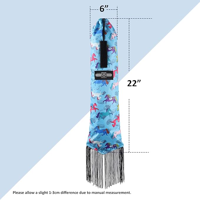 • WATER-REPELLENT & EASILY MAINTAINED: This lightweight tail bag is machine washable but hand wash is recommended to avoid the touch fastener deteriorating the tassels. The horse’s tail can be kept clean, tangle-free, and lasts in all weather conditions.