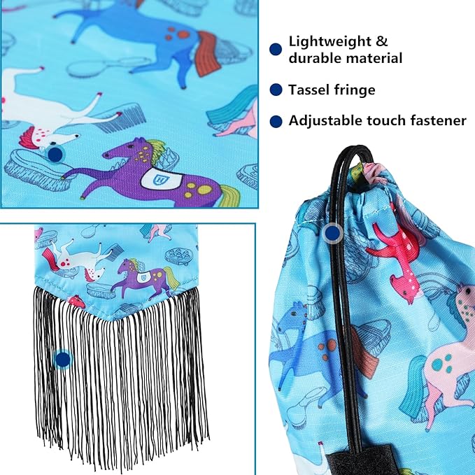 Harrison Howard Smooth Lightweight Adjustable Fastener Nylon Horse Tail Bag with Fringe