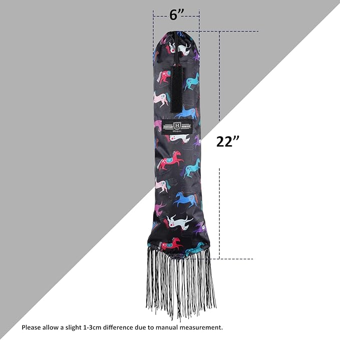 - WATER-REPELLENT & EASILY MAINTAINED: This lightweight tail bag is machine washable but hand wash is recommended to avoid the touch fastener deteriorating the tassels. The horse’s tail can be kept clean, tangle-free, and lasts in all weather conditions.