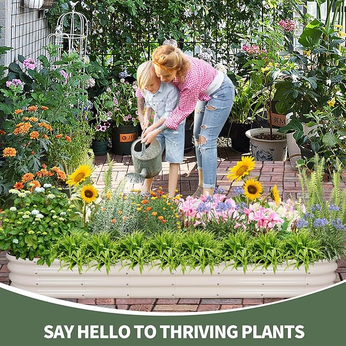 - 【High-Quality Materials & Durable】 Made from 0.7mm metal panels with double-layer anti-corrosion, this outdoor raised garden bed features a robust oval-shaped design for added strength and durability. Resistant to rust and corrosion, it provides a long-lasting gardening solution that can be reused for many years, ensuring a sustainable and reliable space for your plants to thrive