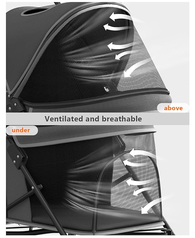 - [Upgraded Durable Materials] - Designed with high-visibility and breathable mesh, our pet stroller ensures that your pet can enjoy the view and receive ample ventilation, keeping them safe and healthy on the go. Crafted from robust 600D Oxford fabric, the stroller is not only water-resistant but also built to last, offering a secure and durable mobile haven for your furry companion.
