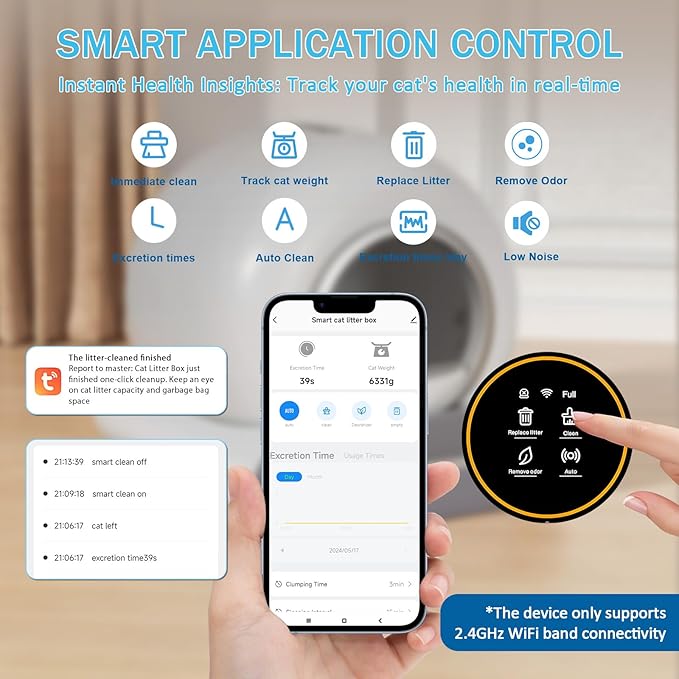 - 🐾【BEHAVIORAL HEALTH INSIGHT】Proprietary SmartTrack 2.0 technology combines weight sensing with toilet time, and generates toilet records by detecting the toilet time of cats with different weights.