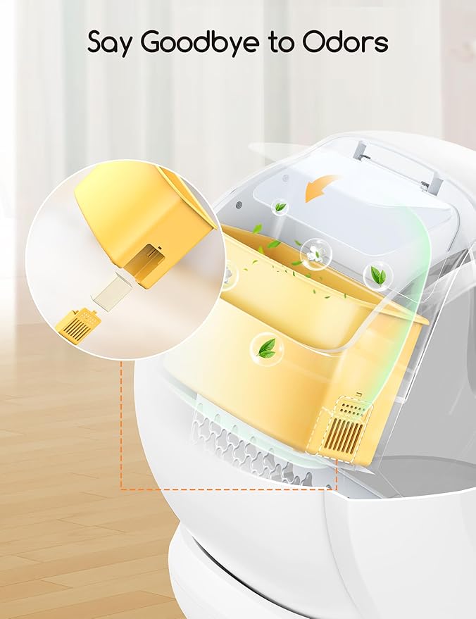 - Odor Control & Whisper-Quiet: The Meowant automatic litter box features an odor-proof cover that effectively contains smells, while a scented gel keeps the litter box fresh. The ultra-quiet motor operates at just 38dB, ensuring a peaceful environment for you and your family.