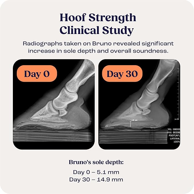 - Long-Term Hoof Health & Protection – Nourish hooves from the inside out with daily supplementation designed to repair damage, strengthen growth, and maintain resilience for years of hoof health.