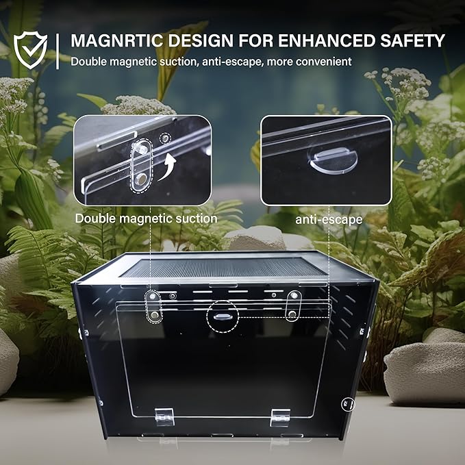 - High Transparency Acrylic Material, Easy to Clean and Maintain Made of high-quality acrylic, this small terrarium offers excellent visibility and is easy to clean. It ensures that your spider terrarium or reptile terrarium stays hygienic with minimal effort, providing a healthy habitat for your pets and saving you time on maintenance.