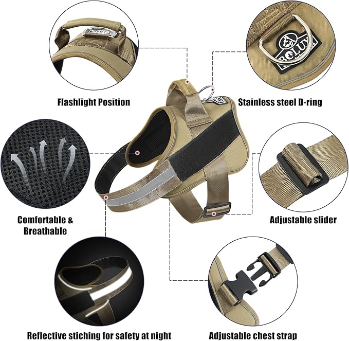 - OUTDOOR HEALTHY: Puppy no pull dog harness with reflective straps to ensure your dog is highly visible and keep dogs safe at night. You can connect the dog leash on the D-ring and with handle is easy to control on crowded streets. The high-end pet harness is perfect for daily walking, running, hiking, training, hunting, outdoor adventure and more!