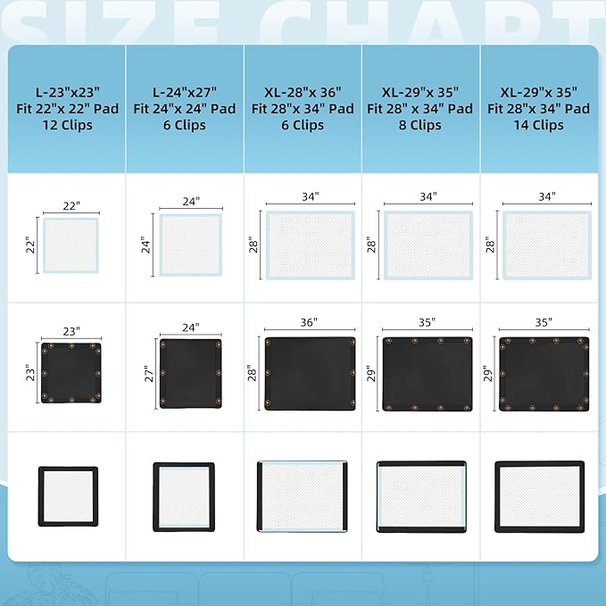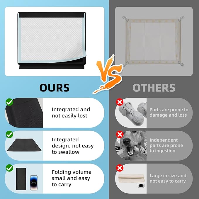 Dog Pee Pad Holder, Oxford Cloth Material, Fit 28"x34" Pad,Puppy Pad Holder, 8 Powerfu Magnetic Clips, Indoor Dog Potty, Black