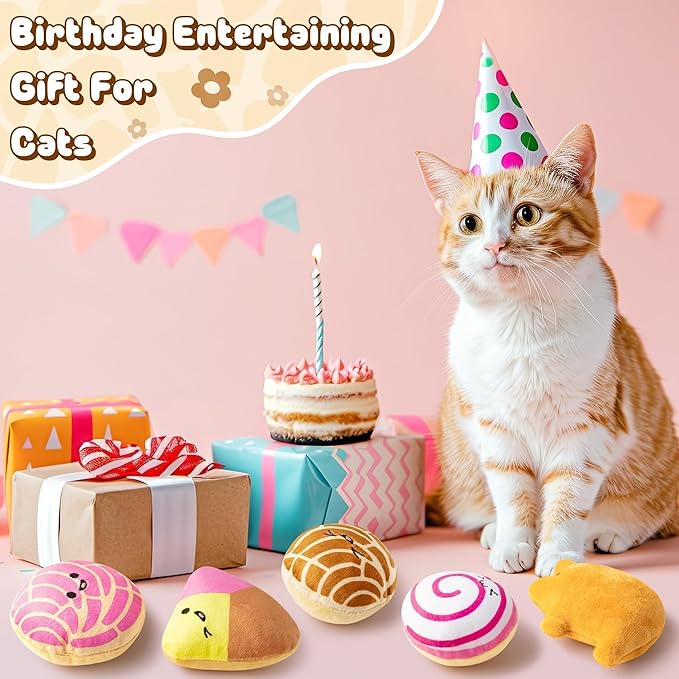 L1rabe Mexican Catnip Stuffed Toys - Hispanic Heritage Month 5Pcs Concha Cafecito Pan Dulce Funny Cat Toys for Cat Lovers Indoor Kitten Chew Bite Kick Non-Toxic Pet Supplies Kitten Birthday Presents