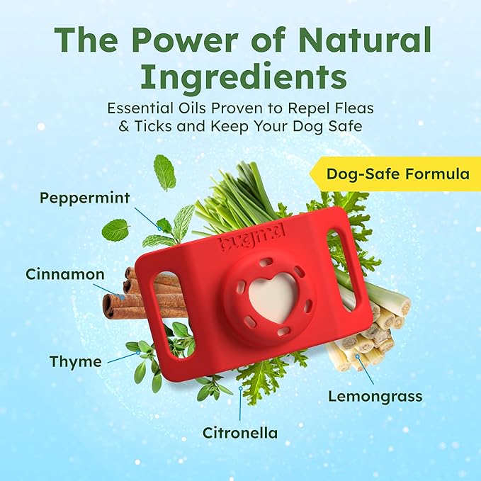 BugMD Paw Guardian Flea and Tick Prevention Pendant for Dogs with AirTag Holder | Plant-Powered Flea & Tick Control for Dog Collars Harnesses | Dog Tag with Air Tag Holder - Red