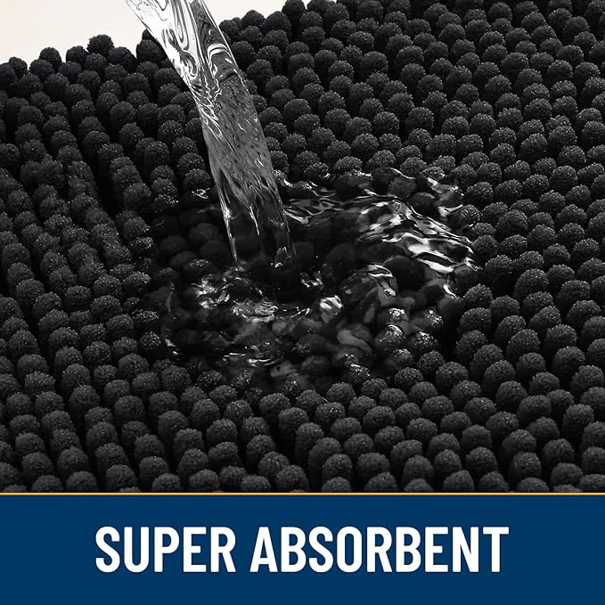 - [Absorbent and Dirt Trapper] High-density chenille dog mat, super absorbent and dirt-catching, whether wet after shower, muddy or moisture bring back by dogs, it can absorb well, so that you and your favorite pet can say goodbye to the wet and mud. It's an excellent choice for use as an entryway door mat, a welcome door mat or a dirt-trapping door mat.