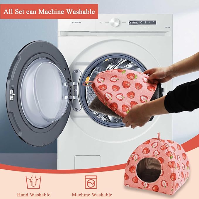 - Multi-Scenario Functional Design--This versatile hideout serves as a cozy sleeping bed, a hideaway for cages, or a comfortable lap cushion for bonding time. Whether your pet needs a nap or a safe spot to retreat, this bed provides the perfect solution.Bright colors and whimsical strawberries make them stylish standalone decor even when not in use by pets