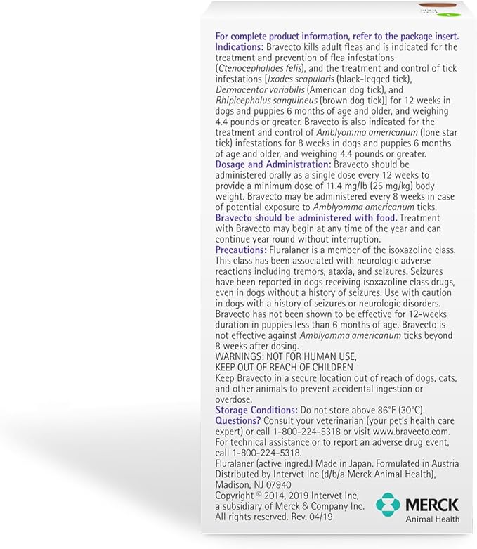 - BRAVECTO Chews last nearly 3X longer than other monthly chews