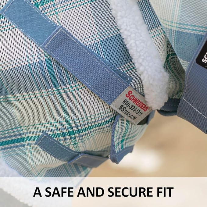 Schneiders Dura-Mesh Plaid Fly Horse Mask with Ears | Ultra-Durable 1000D Mesh | 70% UV Protection | Breathable Open Weave | Color Blue Plaid | Size Cob