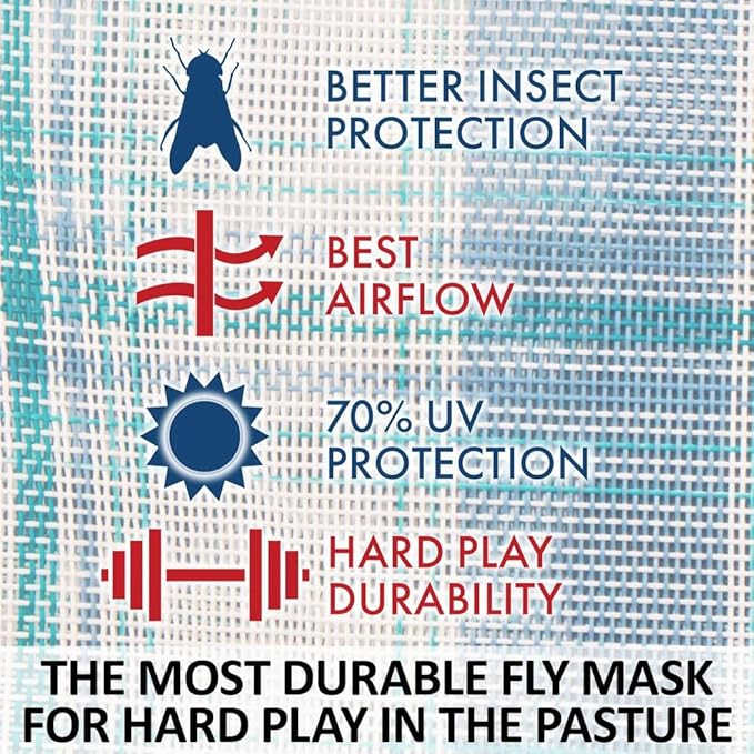 - Color Blue Plaid | Size Cob - DURABLE 1000D MESH - Crafted from heavy-duty vinyl-coated Dura-Mesh, this fly mask withstands daily turnout and hard play while shielding your horse from biting insects like deer flies, greenheads, and horse flies.