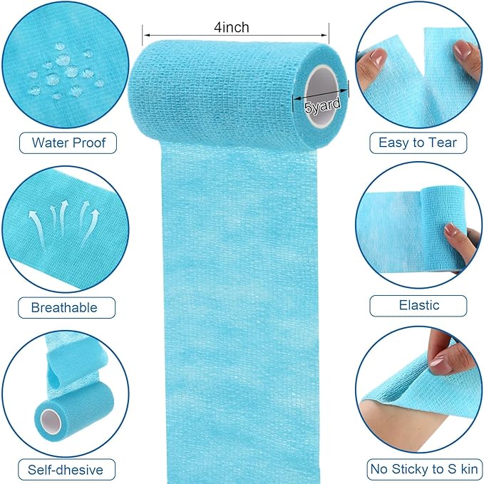 - Long Service Time: each cohesive bandage wrap measures approx. 4 inch x 5 yard, long enough for your long term usage, lightweight and compact, easy to carry; You just need to tear it off and wrap it around your wrists, fingers, ankles, back, knees and other body parts