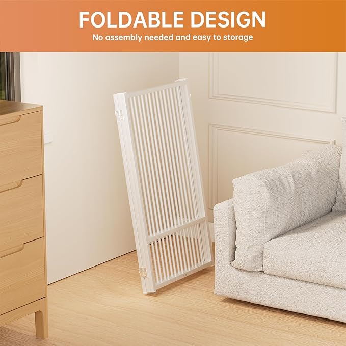 - [Versatile Sizes]: Our pet dog gate is available in 24-inch and 32-inch heights, perfect for puppies, small and medium dogs pets. Multi-choice of 2 panles, 4 panles and 6 panles, suitable for stairs, kitchens, bedroom doors, corridors and other indoor and outdoor forbidden areas.