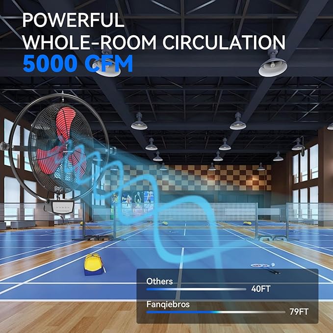 - ๐๐จ๐ฐ-๐๐จ๐ข๐ฌ๐ ๐๐๐ฌ๐ข๐ ๐ง - With optimized motor and vibration reduction technology. When running at a high speed of 5000 CFM, the noise level is only 59 dB, this wall fan is lower than the industry standard, creating a quieter gathering or working environment