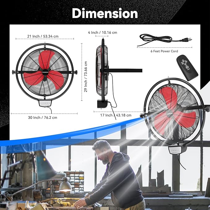 - ๐๐๐ฆ๐จ๐ญ๐ & ๐๐๐ง๐ง๐ฎ๐๐ฅ - This remote control wall fan supports two switching methods. You can easily operate the heavy duty wall fan through manual buttons or remote control. You can remotely control the wall mounted fan without going to the wall fan. Easily adjust the wind speed, mode and other settings to enjoy the most comfortable wind experience