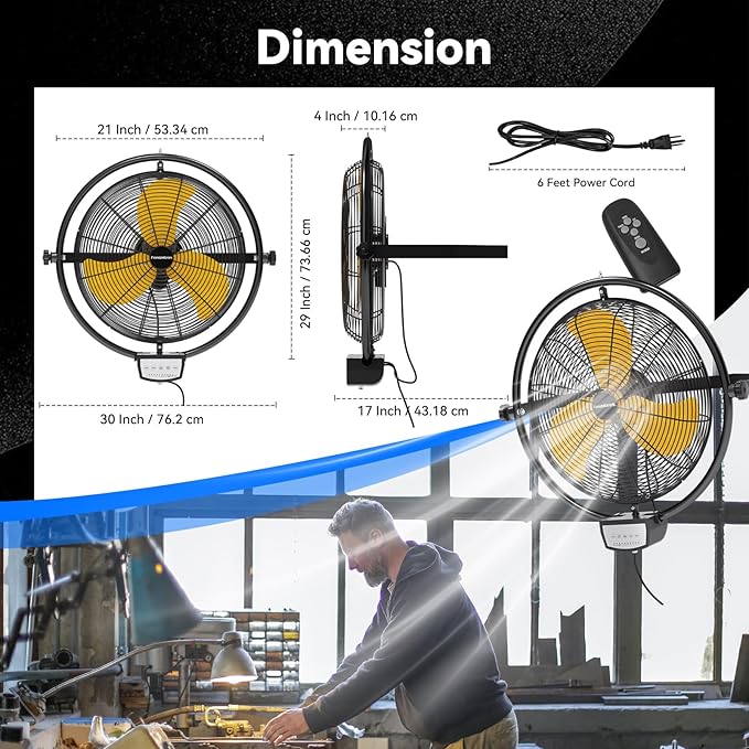 - ๐๐๐ฆ๐จ๐ญ๐ & ๐๐๐ง๐ง๐ฎ๐๐ฅ - This remote control wall fan supports two switching methods. You can easily operate the heavy duty wall fan through manual buttons or remote control. You can remotely control the wall mounted fan without going to the wall fan. Easily adjust the wind speed, mode and other settings to enjoy the most comfortable wind experience