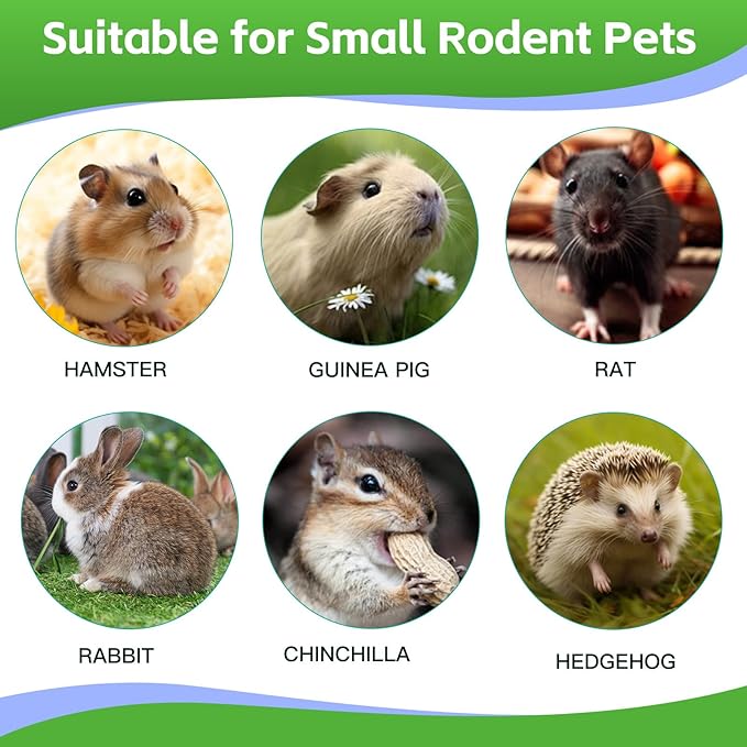 - **🐇 Versatile for All Small Pets & Habitats** Suitable for rabbits, chinchillas, guinea pigs, hamsters, and other rodents. Use the chew toys in cages, playpens, or during bonding time. Lightweight and easy to hang or place in any setup.