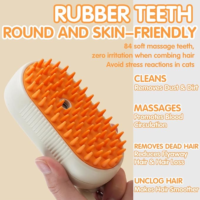 - 【4 in 1 Cat Steam Brush for Shedding】Combines brushing, shedding control, anti-static, and gentle massage functions in one easy-to-use tool, perfect for keeping your cat’s coat healthy and your home hair-free