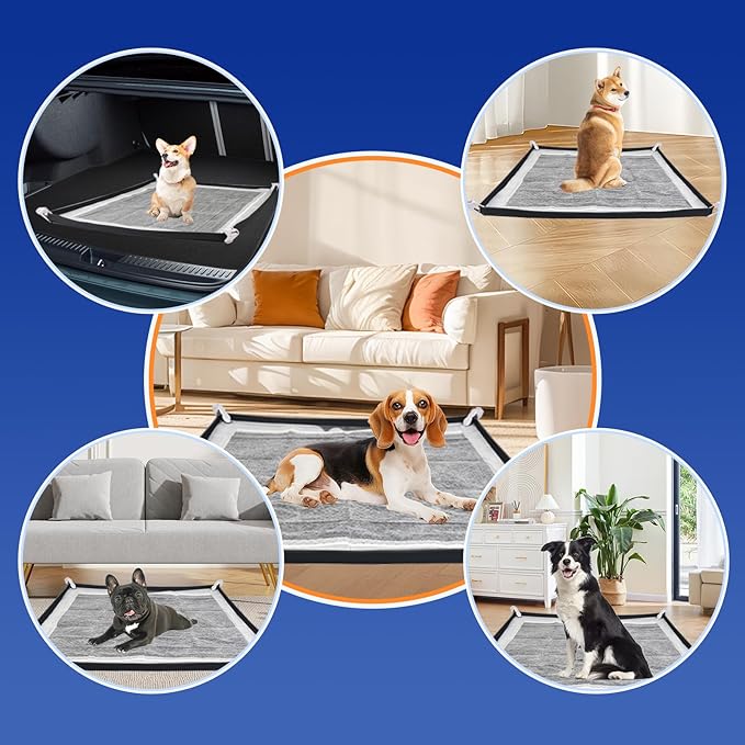 - High Edge & Easy to Clean:The high raised edge of this pee pad tray holds any spills, protect your floors and carpets from urine spills and leaks.Simply wipe down the mat with a wet cloth or sponge.It's compact and lightweight.Easy to roll up and store and making it ideal for travel or use in different areas of your home