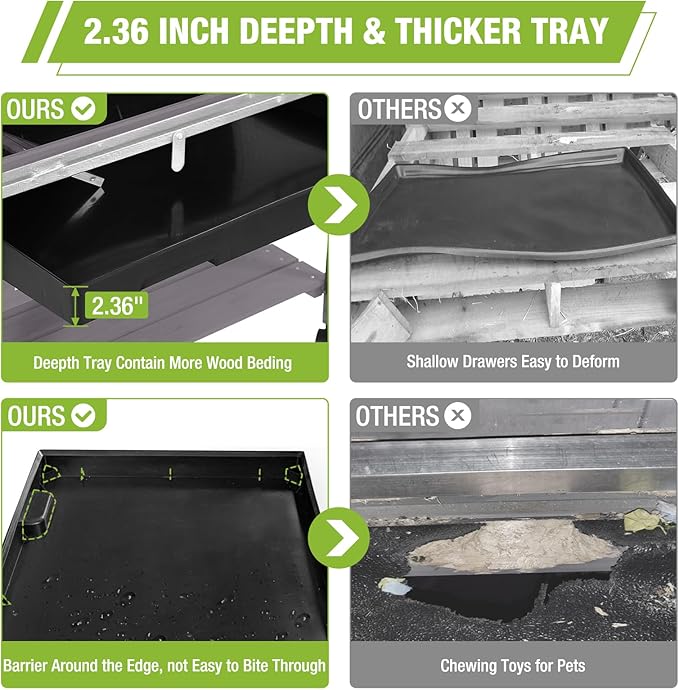 - 2.36" Deep Tray: The deepened plastic tray gives you ample space for bedding, with special baffles in the corners to prevent pets from chewing