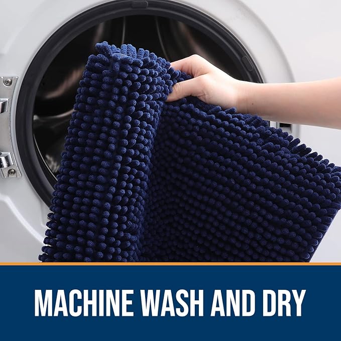 OLANLY Dog Door Mat Set 2-Piece 36x24, Absorbs Moisture and Dirt, Absorbent Non-Slip Washable Doormat, Quick Dry Chenille Mud Mat for Dogs, Entry Indoor Entryway Carpet for Inside Floor, Navy Blue