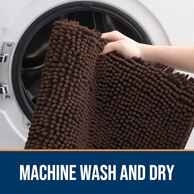 - [LOW PROFILE AND EASY CARE] OLANLY's Chenille Dog Door Mat boasts a slim 1-inch profile, offering a sleek and streamlined appearance. The thoughtful design ensures your doors won't get stuck, and the mat stays securely in place. Cleaning is a breeze – simply shake off any dirt or debris, or toss it in the washing machine for a deeper clean. It dries quickly, so you can be sure it's ready to use again in no time.