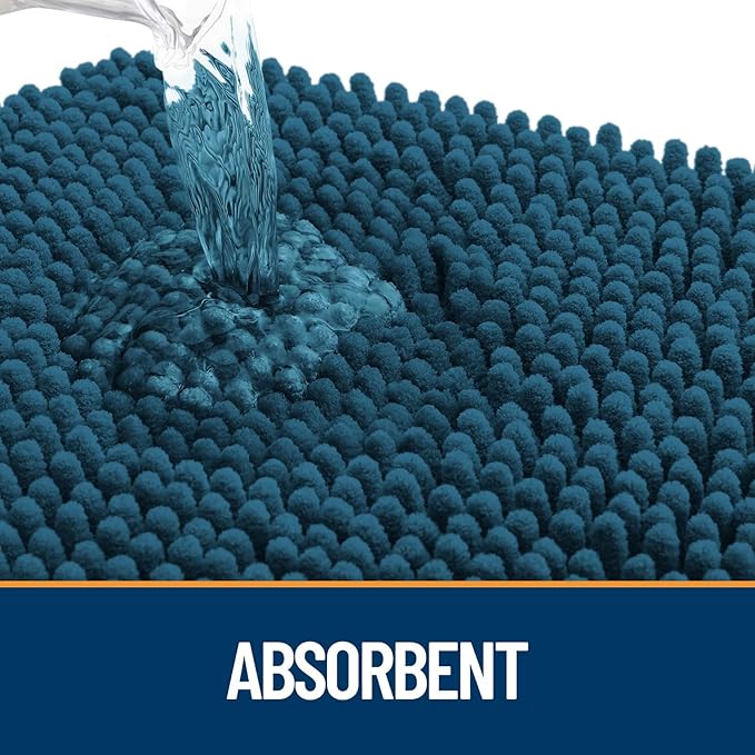 OLANLY Dog Door Mat Set 2-Piece 24x16, Absorbs Moisture and Dirt, Absorbent Non-Slip Washable Doormat, Quick Dry Chenille Mud Mat for Dogs, Entry Indoor Entryway Carpet for Inside Floor, Atlantic Blue