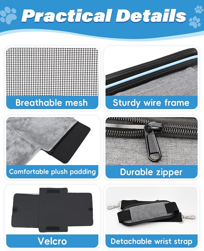 - Scratch-Resistant Breathable Mesh Design: Crafted with heavy-duty scratch-resistant breathable mesh, the SJPNVUS Travel Pet Bag ensures all-weather airflow to keep your pet stay dry and comfortable during long-distance travel. The 360° breathable mesh structure minimizes stuffiness while blocking aggressive scratching, while preventing pets from scratching and protecting the durability of the bag.