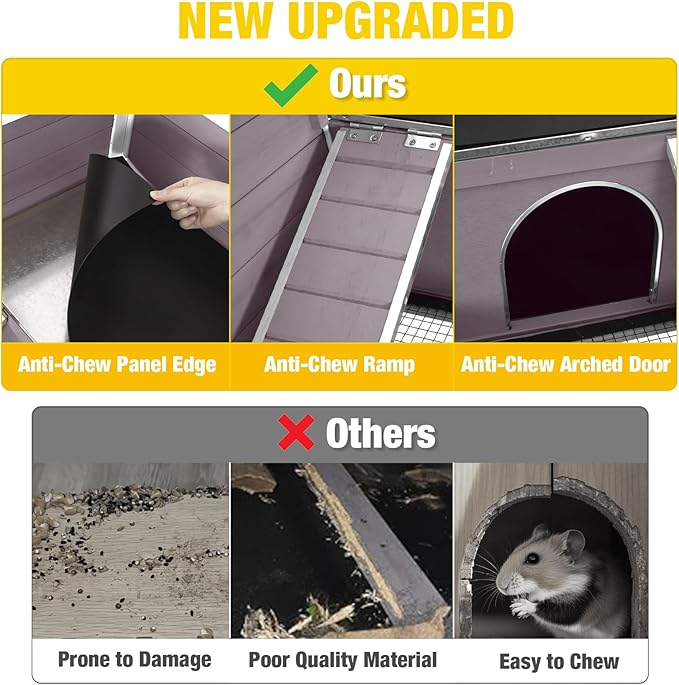 - 2-in-1 Multi-Level Design: Features distinct sleeping, dining, bathroom, and play areas. Spacious second floor (36.6"L x 19.6"W) provides ample room for 1 rabbit and 1-2 small pets.
