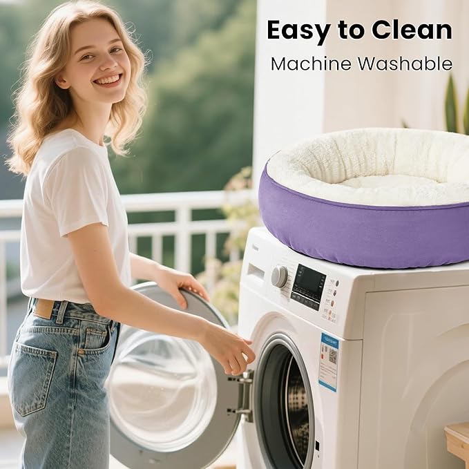 Love's cabin Round Donut Cat and Dog Cushion Bed, 30in Pet Bed for Medium or Large Dogs, Anti-Slip & Water-Resistant Bottom, Soft Durable Fabric Pet beds, Washable Calming Cat Bed Lavender