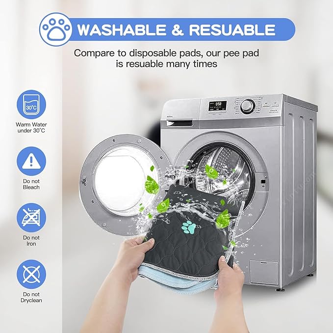 - [WASHABLE & REUSABLE] The reusable pee pads can be machine washed. Meanwhile, it comes with 4 pcs of potty pads in the package. So you can easily replace a new one after cleaning. Our washable pee pads for dogs are more affordable and also can serve you for a long time