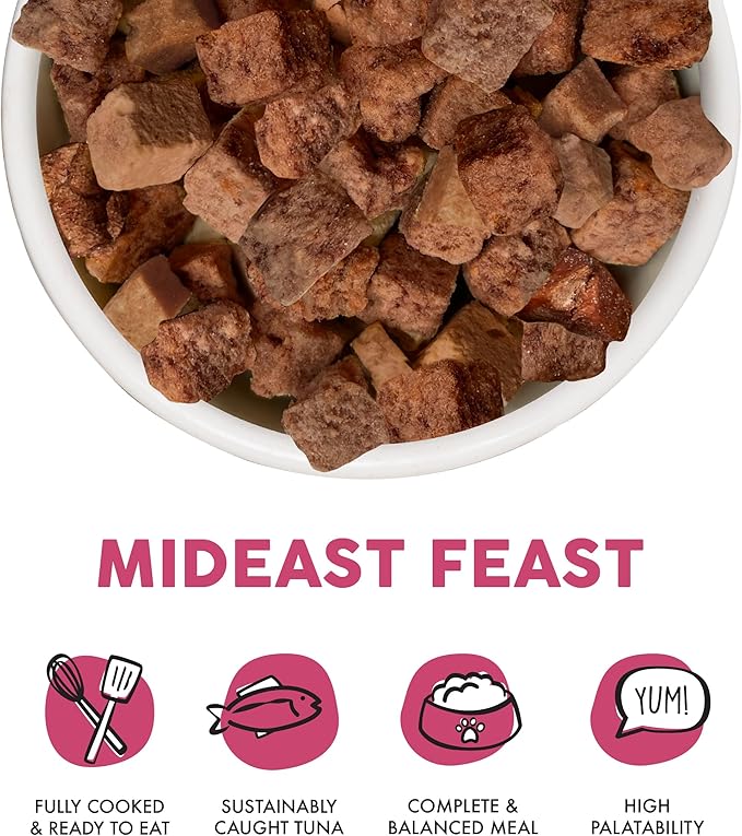 - Weruva Cat Freeze Dried Mideast Feast, 7oz Bag. Gently cooked tuna, tilapia, and salmon with sunflower oil. No bones or organs