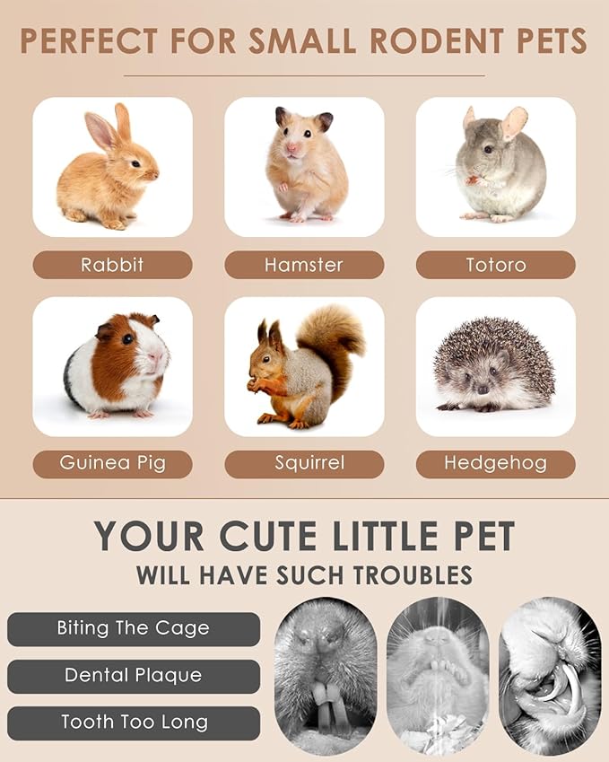 - Promote Dental Health: Rabbit chews not only promotes dental and oral health, but also trims long teeth (such as the incisors of rabbits and hamsters) to prevent the pain of overgrowth. It is a molar toy recommended by veterinarians for rodents