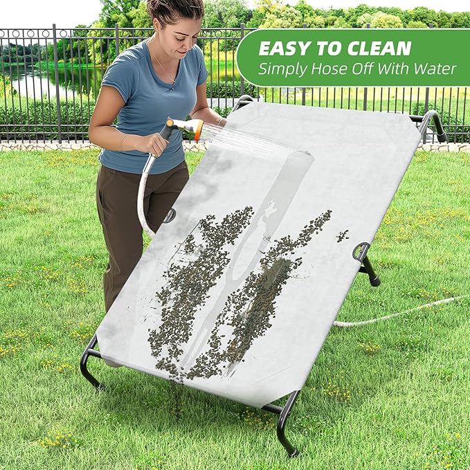 - 【Easy Care】 This cooling dog bed is easy to clean. Clean the mesh with tap water, a hose or a damp towel. For a deep clean, use a mild soap or natural all-surface cleaner and rinse thoroughly.