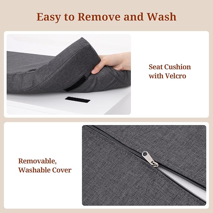 - COMFORTABLE AND CONVENIENT DESIGN: This bench can not only store shoes, but also comes with soft cushions and benches. Provides a comfortable seat when putting on and taking off shoes. The soft and comfortable cushion increases the overall convenience, allowing you to maintain a good mood before going out.