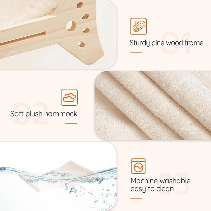 - Stability & Safety: Both cat beds are made of premium pine wood frames, quality plush fabric and sisal, and reinforced with sturdy metal fittings for sturdy build. Whether on the windowsill or floor, they provide a stable support, ensuring your cats’ safety