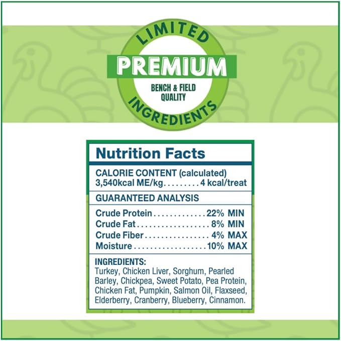 Bench & Field Holistic Natural Turkey & Triple Berry Dog Treats | Crunchy Bone-Shaped Bites | Antioxidant Blend, 10-Ounce Bottle