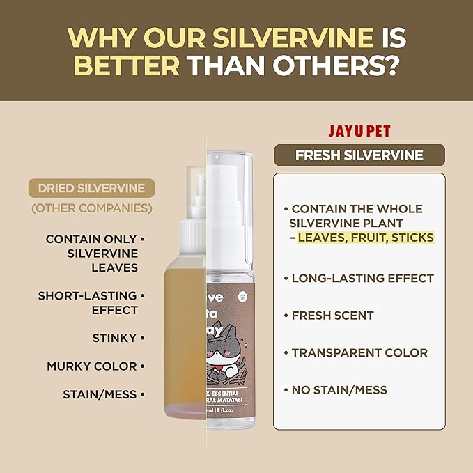 - Full-Plant Extraction for Superior Potency – Unlike most silvervine sprays that use only gall fruits, JAYU PET uses the entire silvervine plant—sticks, leaves, and fruits—to create a richer, more complex extract. This full-spectrum approach enhances scent strength, increases effectiveness, and offers longer-lasting results your cat will love.