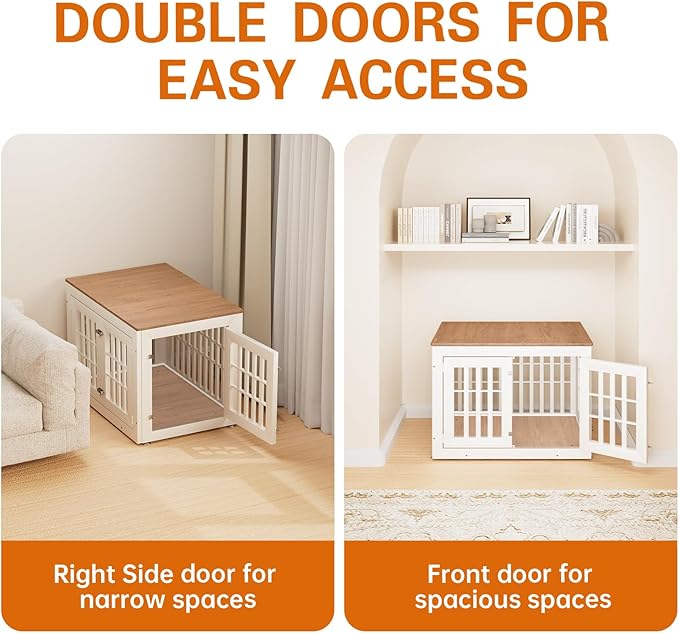 - 【Double Doors Design】The dog kennel furniture has a front door and a side door, your pet will go in and out easily with double doors. The double-doors design can adapt to more different space environments. You can decide whether to open the front door or the side door according to your needs.