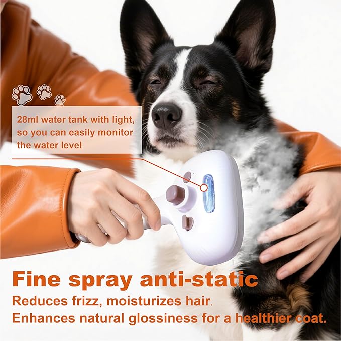 - Safe ,Skin-Friendly & One-Button Self-Cleaning Design: Durable ABS Body & Stainless Steel Comb with Round Massage Headprevent skin irritation. Steam Spray Technology effectively removes loose hair. One-button design simplifies grooming. Ideal for multi-pet households, indoor cat brushes, and dog brush for shedding.