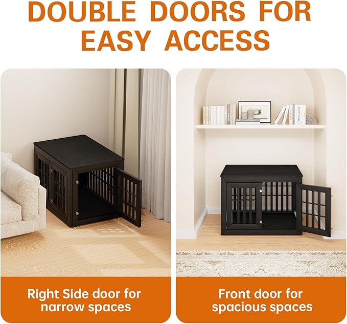 - 【Double Doors Design】The dog kennel furniture has a front door and a side door, your pet will go in and out easily with double doors. The double-doors design can adapt to more different space environments. You can decide whether to open the front door or the side door according to your needs.