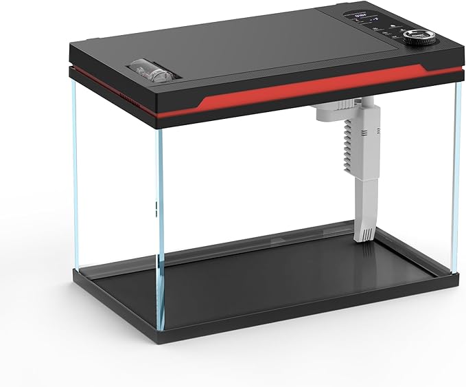 - WATER PUMP/OXYGEN: Based on previous usage experience, the water pump has been updated and upgraded to make it safer to use. Using low-noise 120 GPH 10W water pump. The fish tank comes with 3 water flow modes to choose(P1,P2,P3). In addition to the bottom water inlet pipe, the water pump also has an oil film water inlet. Also has a separate aeration outlet to add oxygen air to the tank, and is equipped with a hose regulating valve to adjust the bubble flow