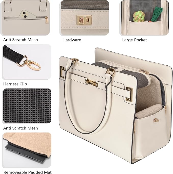 - Stylish & Functional Design Pet Carrier: Modern, chic look with sturdy and water-resistant vegan leather—perfect for fashionable pet owners who want style without sacrificing practicality. And an elastic safety leash is included inside to help prevent your pet from jumping or escaping