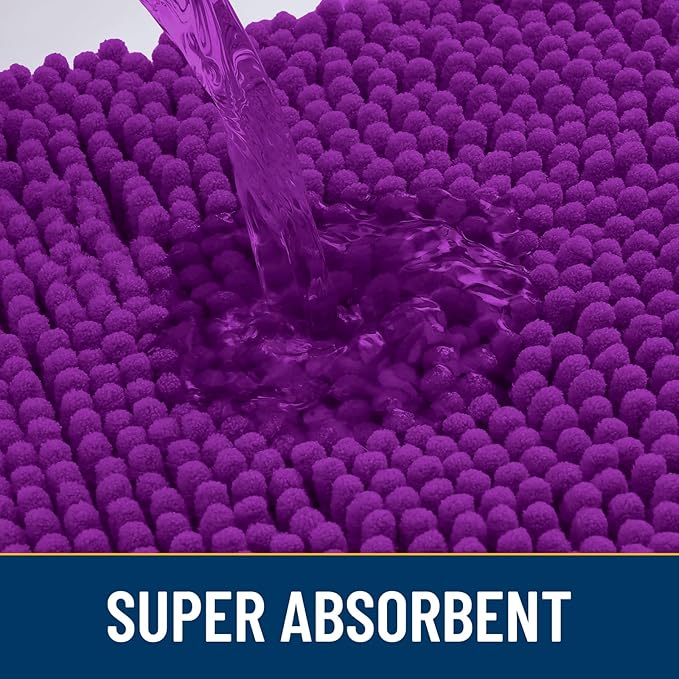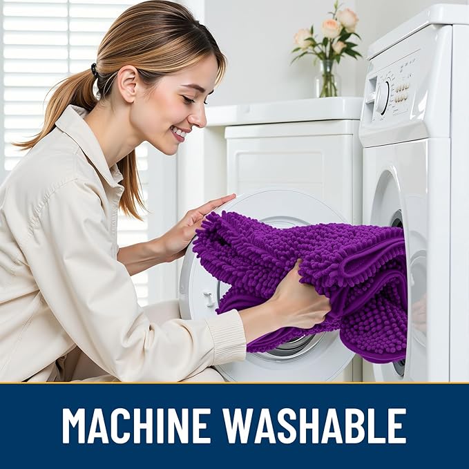 Smiry Dog Door Mat for Muddy Paws 36x24, Absorbs Moisture and Dirt Doormat, Non-Slip Washable Quick Dry Chenille Front Door Mat Indoor Entrance, Entryway Carpet for Inside Floor, Purple