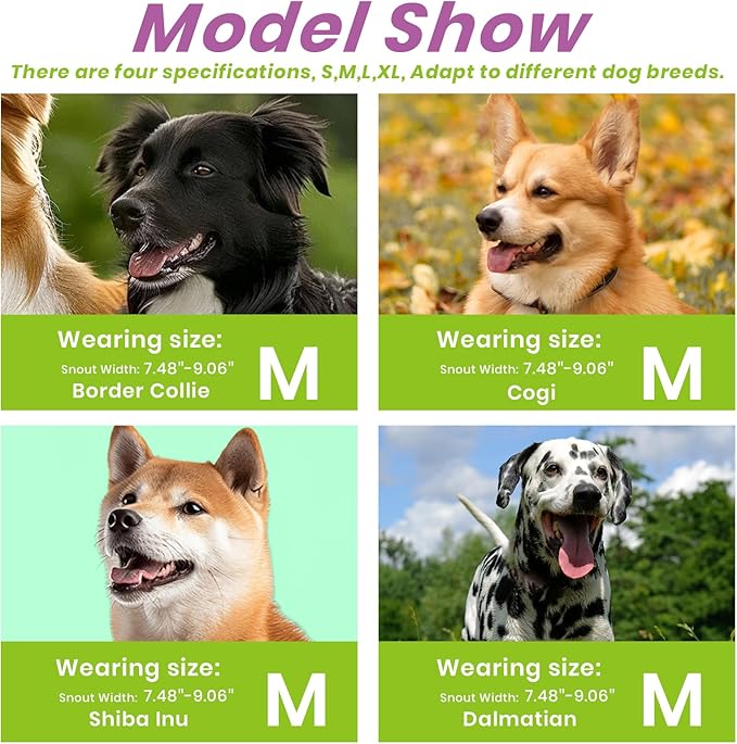 - PLEASE MEASURE BEFORE BUYING:Measure both snout circumference and snout length before purchasing. If your dog's snout length exceeds the size range by about 1 inch, choose the next size up. For long-snout breeds like Dobermans, make sure the snout length fits as well.