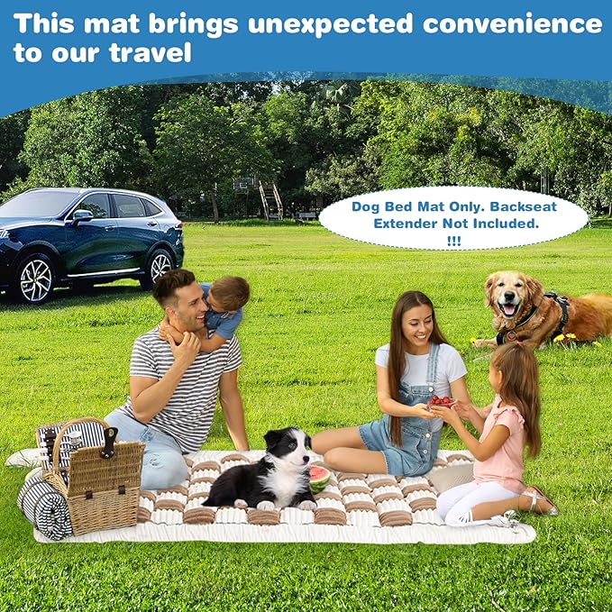 VClife Khaki Plaid Dog Car Bed Mat, Non-Slip Backseat Extender Pet Blanket, Washable Dog Bed Mat for SUVs, Sedans & Small Trucks, Portable Travel Pad for Dogs, Wear Resistant, Pet Friendly, 51"×23.6"