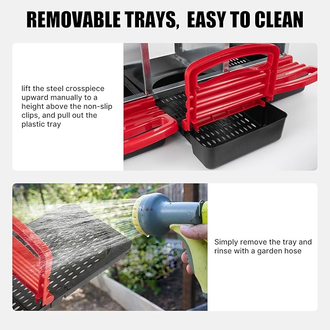 - ๐๐๐ฌ๐ฒ ๐ญ๐จ ๐๐ฅ๐๐๐ง & ๐๐๐ข๐ง๐ญ๐๐ข๐ง: With a removable mesh tray, cleaning is quick and convenient. The tray allows debris to fall through, while the design prevents water accumulation, ensuring a dry, hygienic environment. Simply remove the tray for easy washing and maintenance.